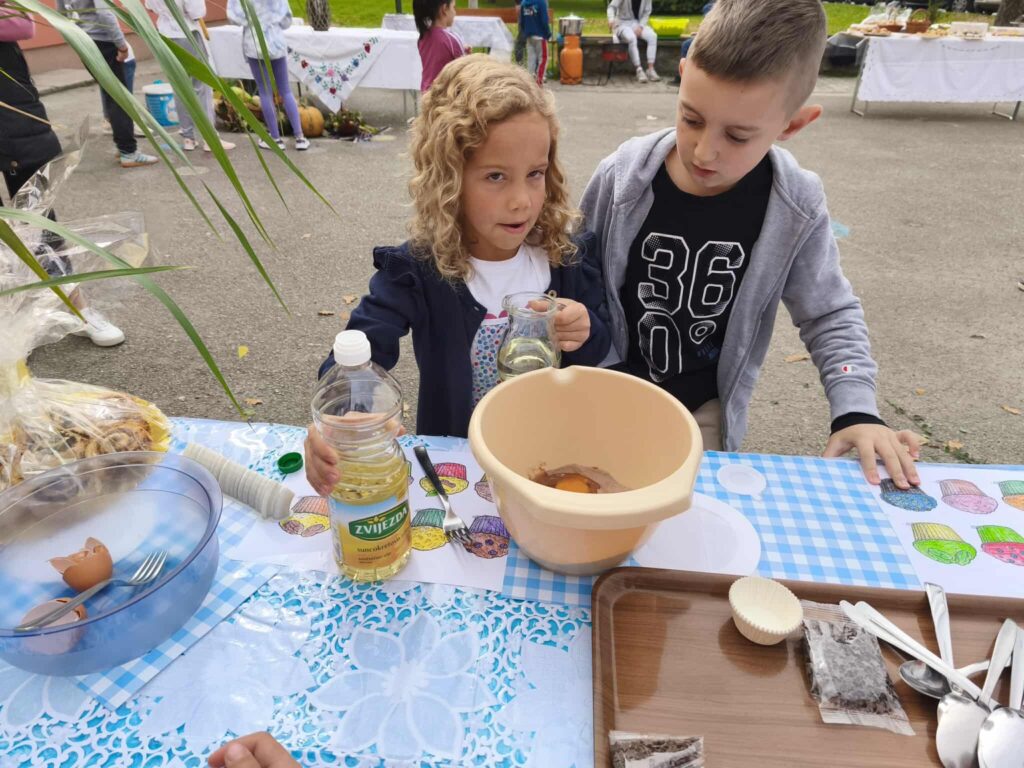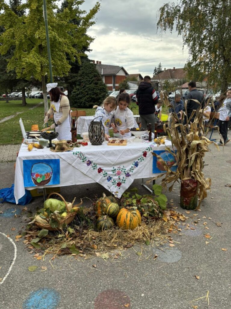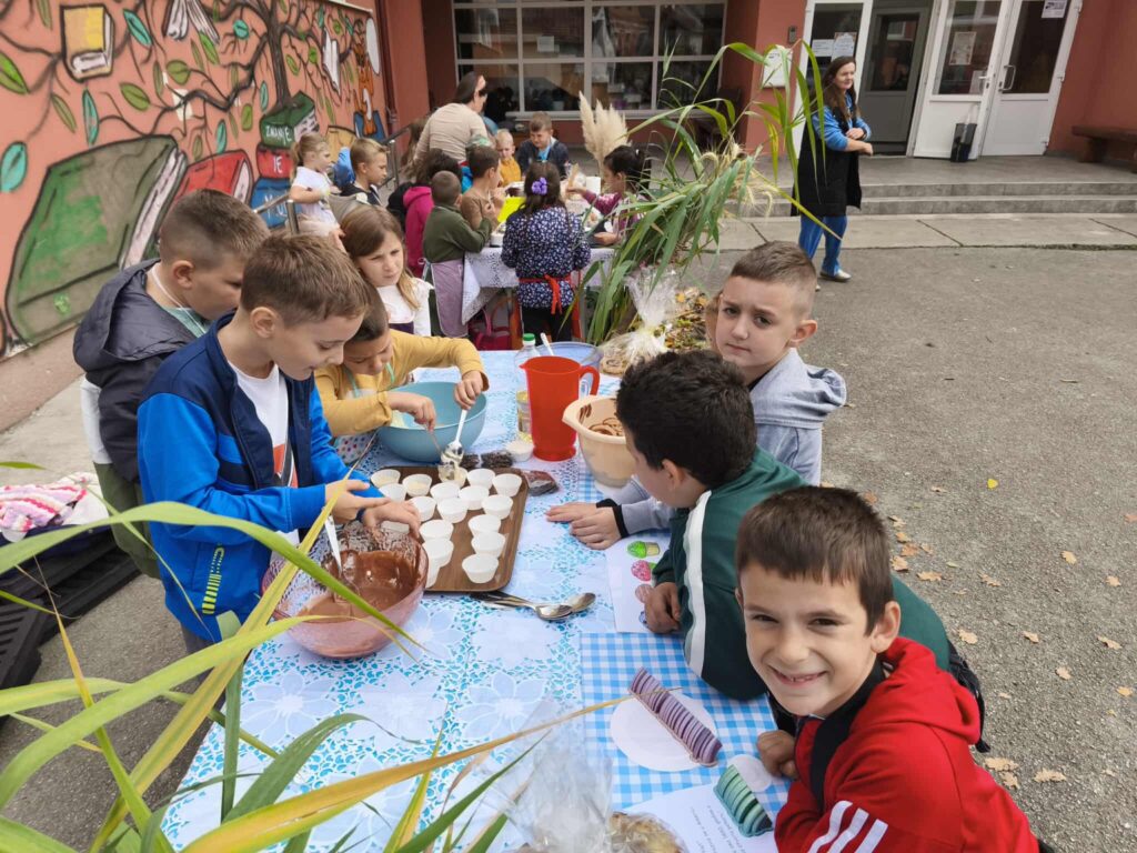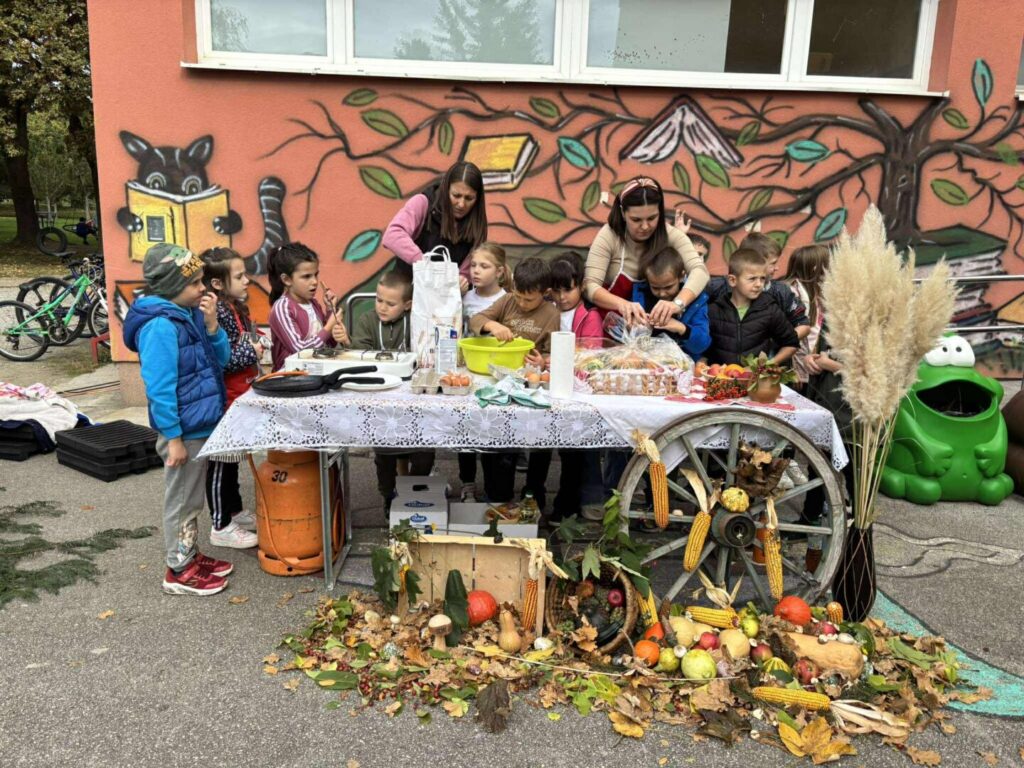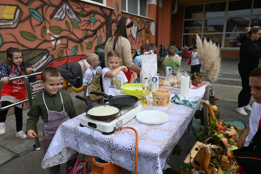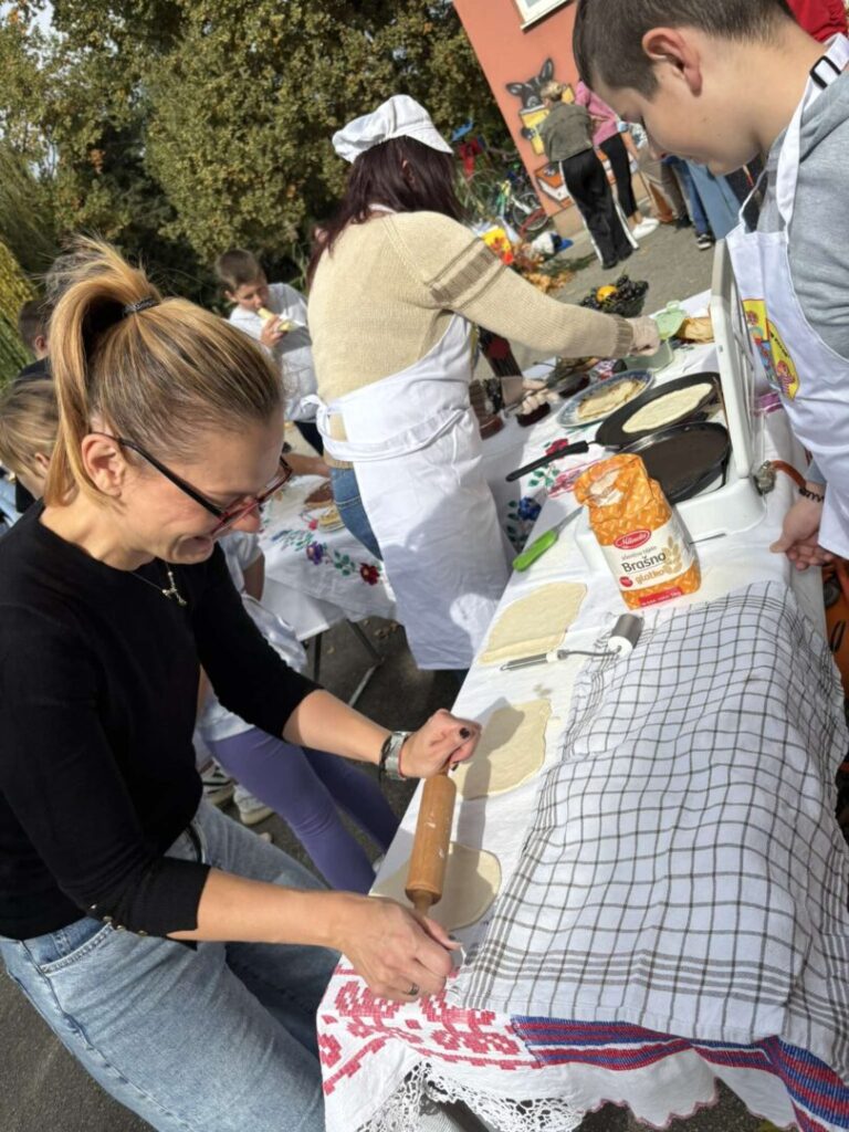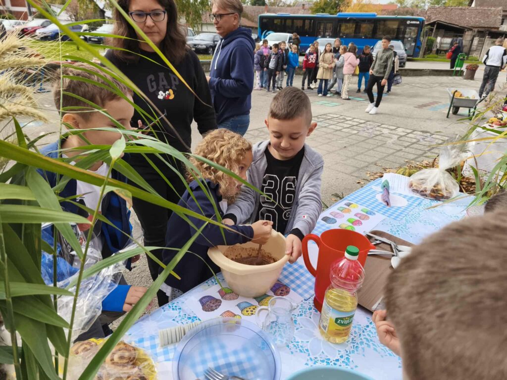 Od 11 do 13 sati održavale su se kulinarske radionice na otvorenom, ispred škole. Svaki je razred imao svoj stol ukrašen u slavonsko-jesenskom duhu, a mirisi pečenih kestena, kolača i toplih slastica ispunili su školsko dvorište.