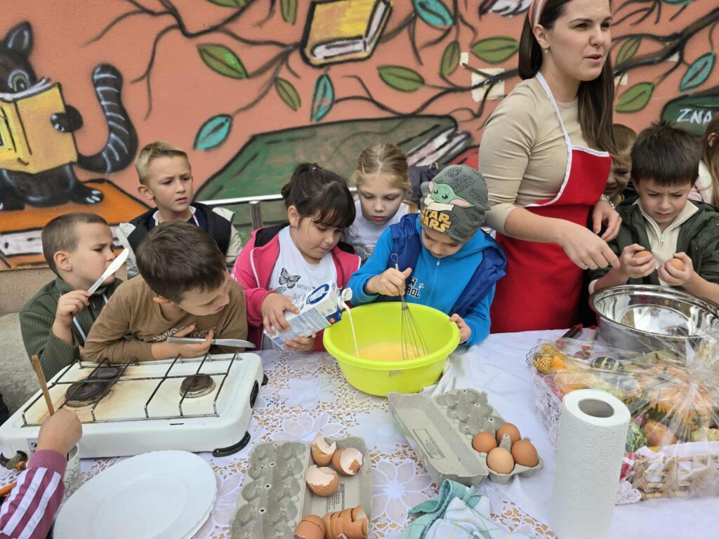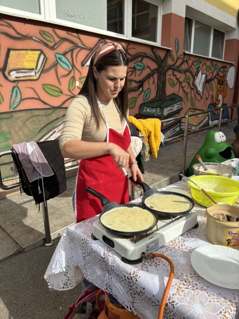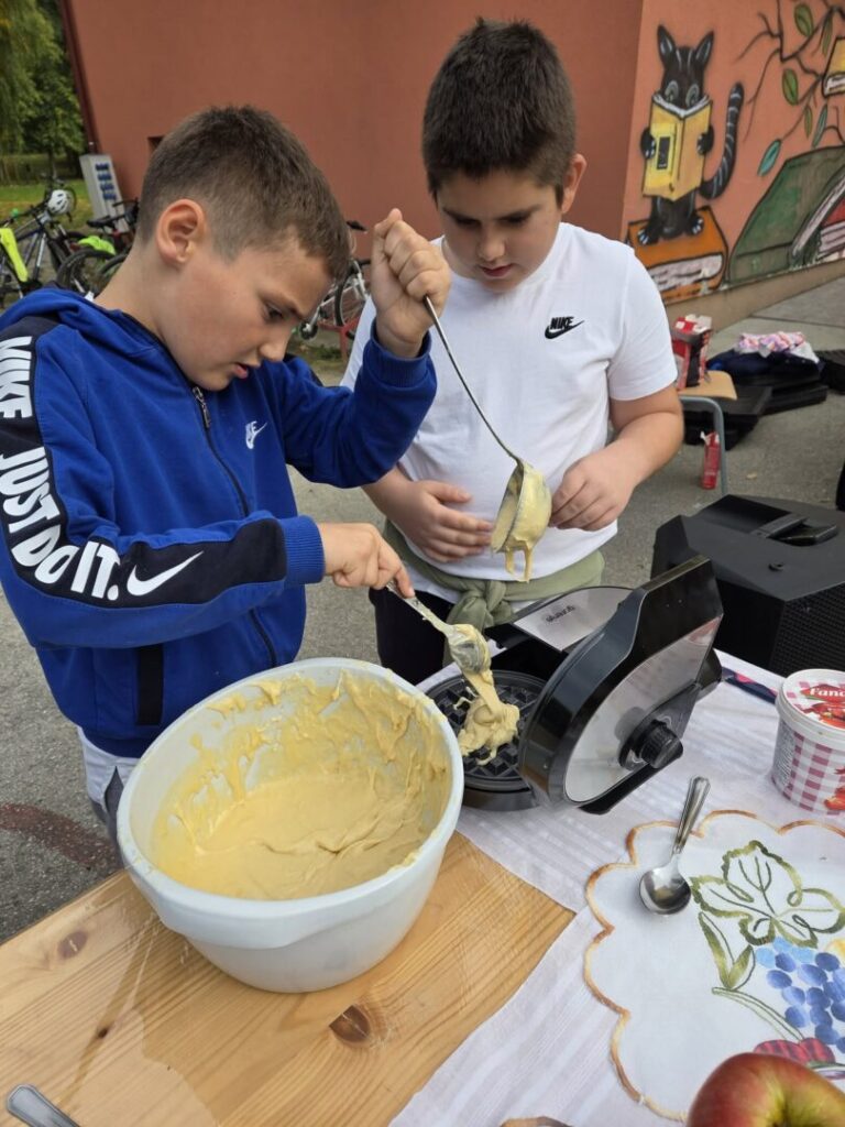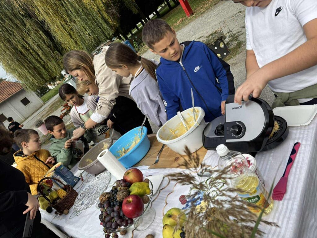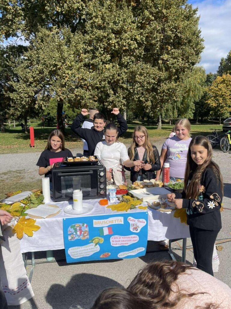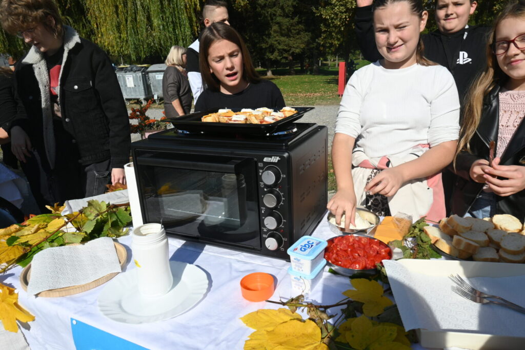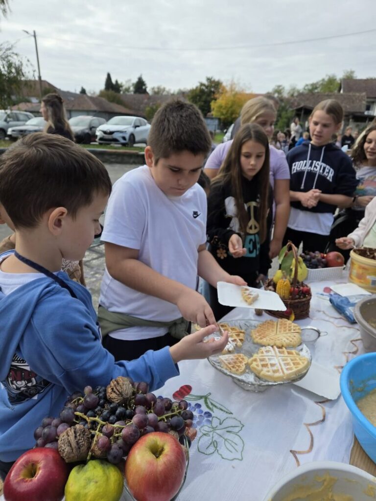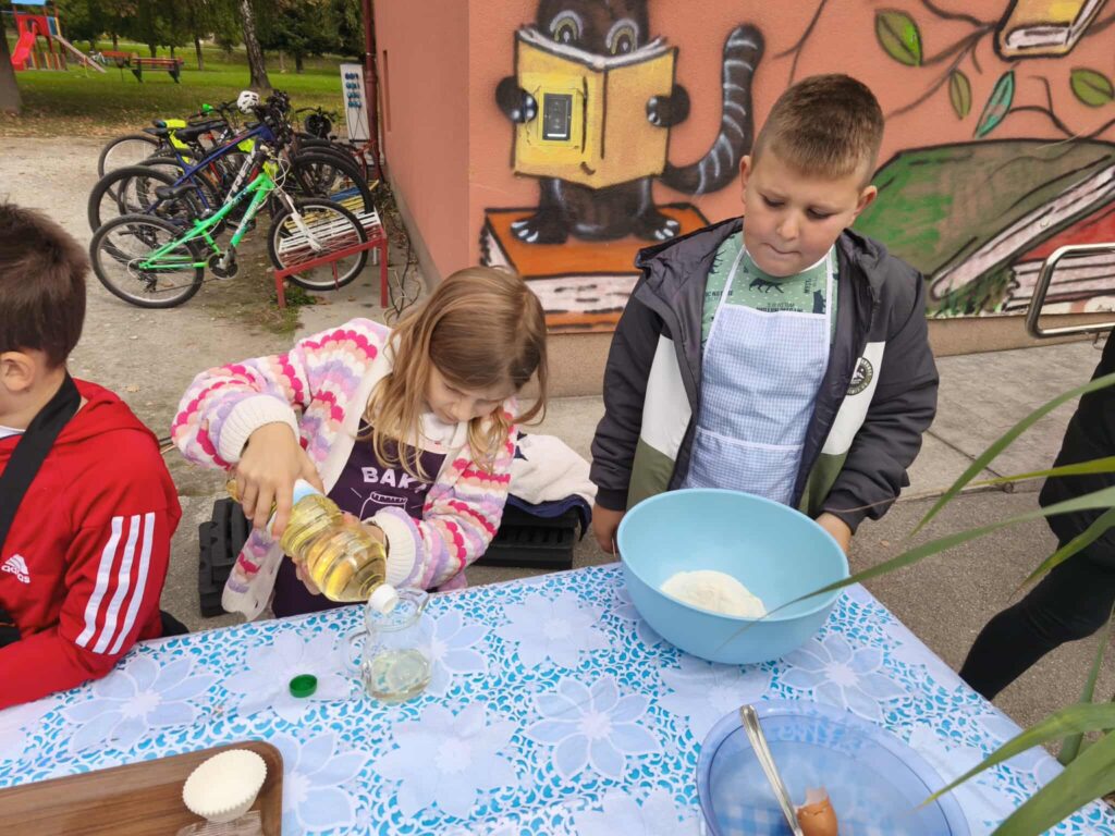 Od 11 do 13 sati održavale su se kulinarske radionice na otvorenom, ispred škole. Svaki je razred imao svoj stol ukrašen u slavonsko-jesenskom duhu, a mirisi pečenih kestena, kolača i toplih slastica ispunili su školsko dvorište.
