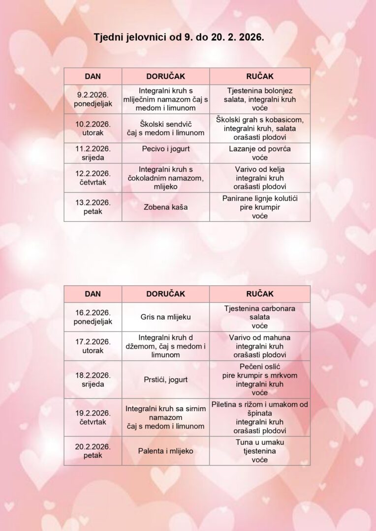 ŠKOLSKI JELOVNIK JELOVNIK 8.-19.9.2025..pdf JELOVNIK 22.9.-3.10.2025..pdf JELOVNIK 6.-17.10.2025..pdf JELOVNIK 20.-31.10.2025..pdf JELOVNIK 3.-14.11.2025..pdf JELOVNIK 19.-28.11.2025..docx JELOVNIK 1.-12.12.2025..pdf JELOVNIK 15.-23.12.2025..pdf JELOVNIK 12.-23.1.2026..pdf JELOVNIK 26.1.-6.2.2026. JELOVNIK WEB 9.-20.2.2026..pdf