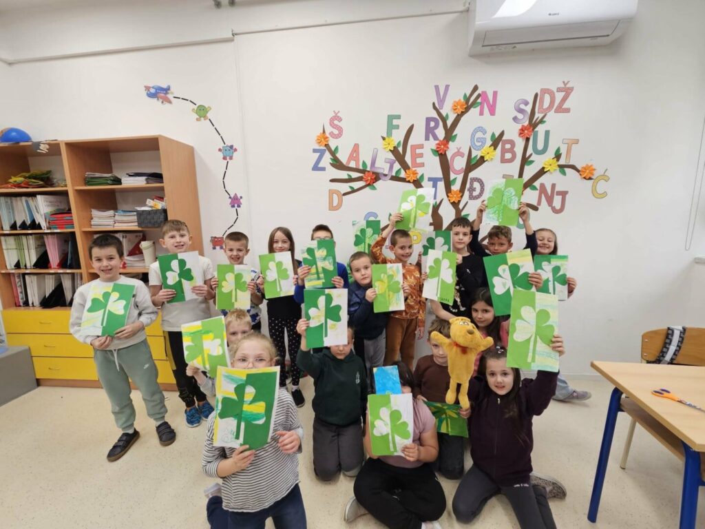 Prvi razred je izradio djetelinu s tri lista te su tražili “zlatnike”.