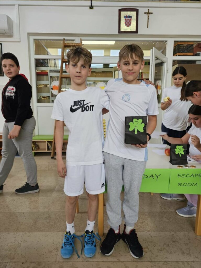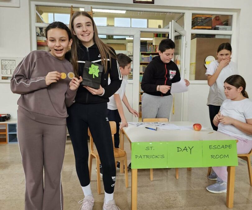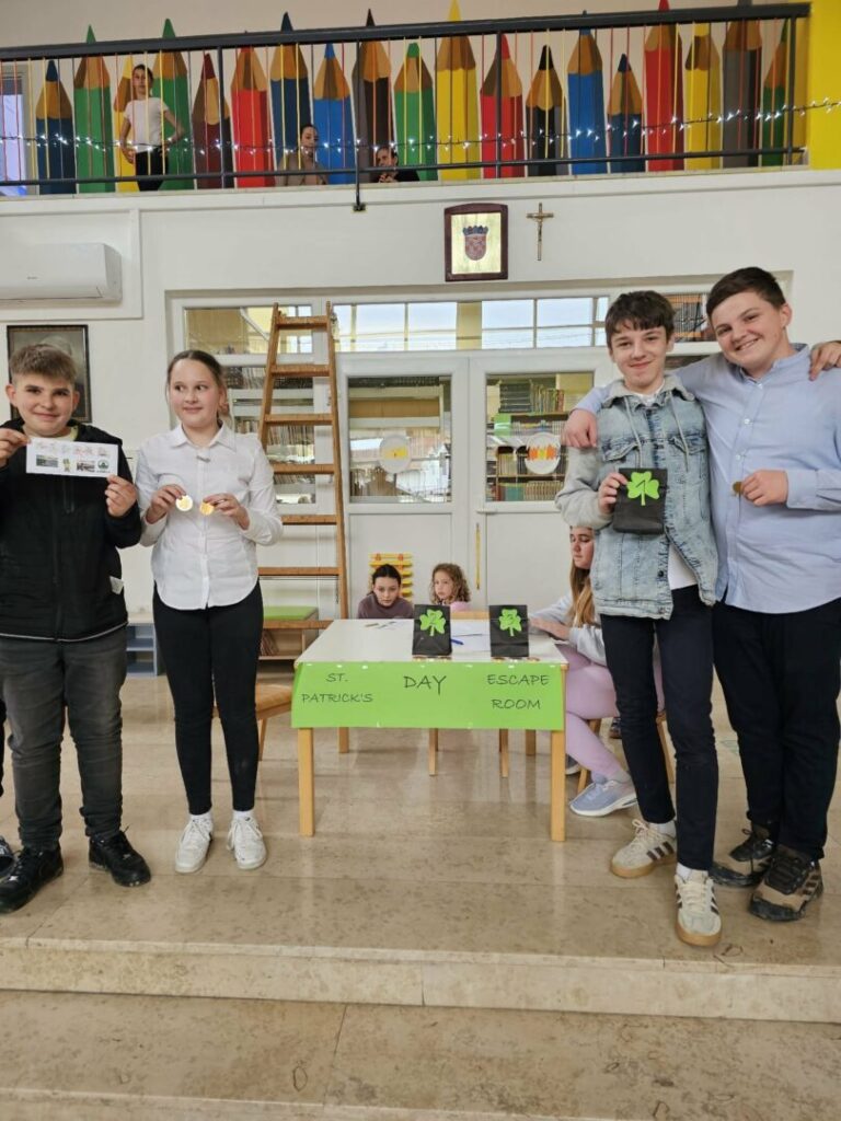 Viši razredi su sudjelovali u St. Patrick’s Day escape room. Odgovaranjem na pitanja o Irskoj i ovom danu su morali otkriti pravu šifru, a troje najbržih su osvojili i male,slatke nagrade.