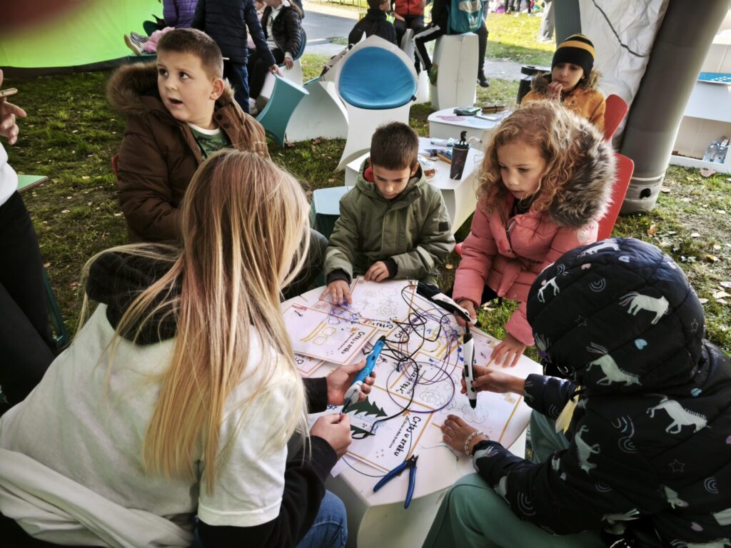 Učenici su s ponosom izlagali svoje radove, ali i istraživali brojne štandove drugih škola, puni radoznalosti i želje za novim znanjima. Posebno iznenađenje bio je posjet profesora Baltazara, legendarnog crtanog lika, koji je obišao naš štand i s kojim smo se rado fotografirali.
