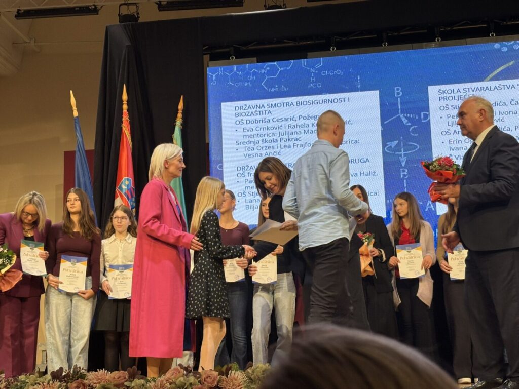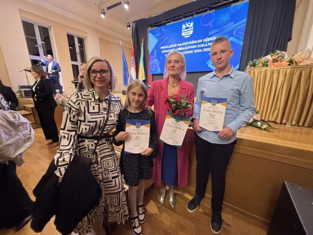Među nagrađenima su i naši učenici Zara Šubara i Marin Vilus, koji su se istaknuli sudjelovanjem na državnoj smotri, kao i njihova mentorica, učiteljica Vlatka Vasilj. Čestitamo im na ovom vrijednom uspjehu i ponosimo se njihovim postignućima!